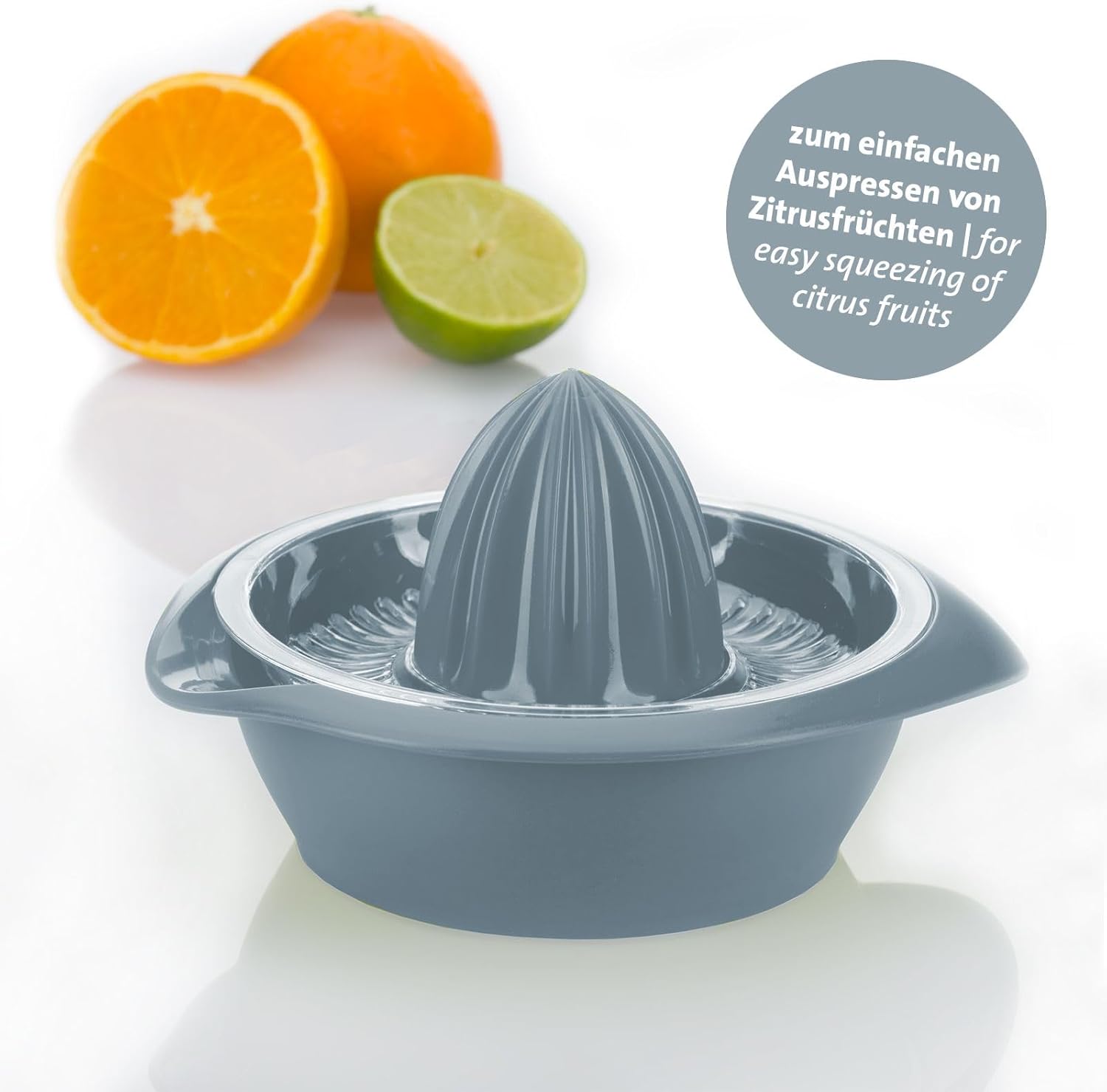With this classic citrus press with spout, you can easily squeeze oranges, lemons, limes and more. The precisely designed ribs on the pressing cone ensure excellent results. The sieve prevents pulp and seeds from getting into the juice.